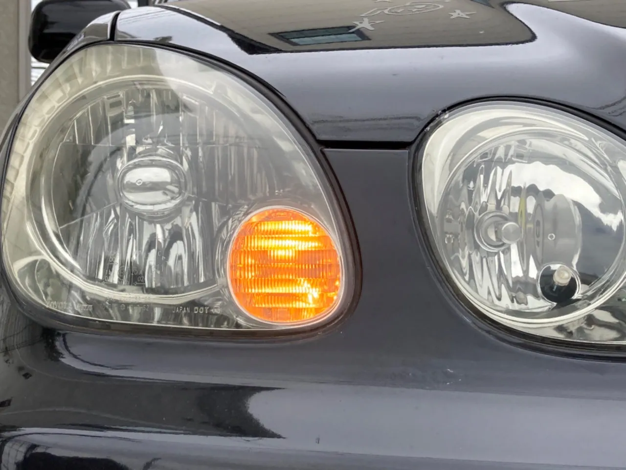 アリストのフロントウィンカーは次のような仕組みになっていて、バルブの横から発せられる光を主に使っています。